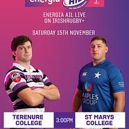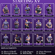 TERENURE COLLEGE: Aran Egan; Daniel Martin, Ethan Reilly, Caolan Dooley, Craig Adams; Julian Leszczynski, William Reilly; Ben Howard, Max Russell, Adam Tuite, Sean Rigney, Oisin Shannon, Harrison Brewer, Ben Blaney, Luke Clohessy. Replacements: Mark Nicholson, Karl O’Brien, Odhran Brannigan, Darragh Brooks, Arthur Ashmore, Griffin Culver, Michael Kennedy, Ross Adams.