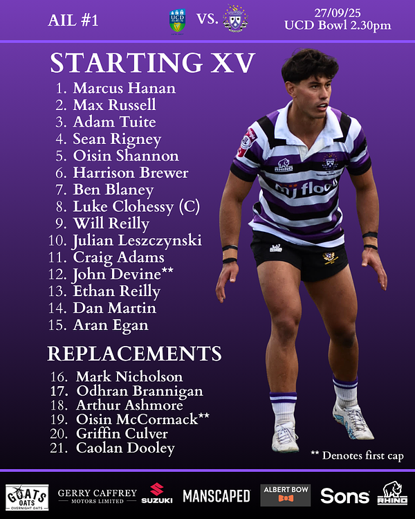 We travel to UCD for a double header tomorrow (Saturday 27/09) as both our first’s and second’s go head to head with the university side in the AIL and metro division 1 respectively.