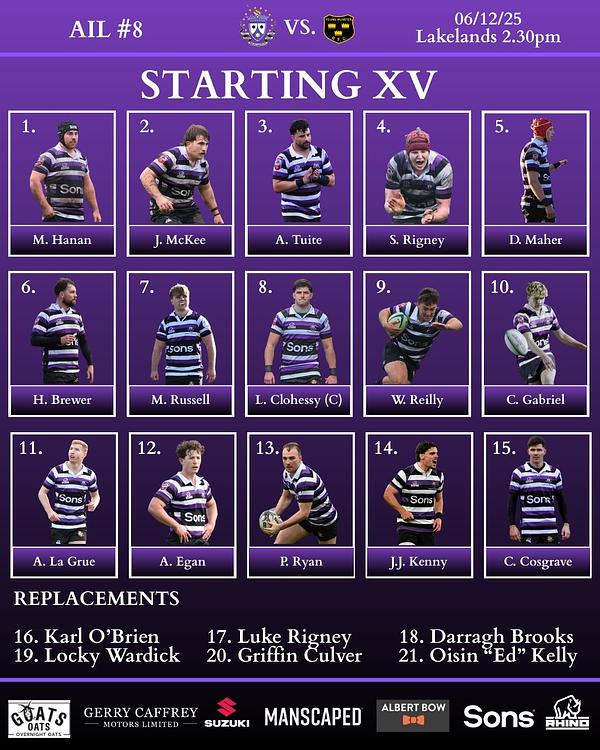 Our line up as we go to war with Young Munster in what is our last home AIL game of 2025 ๐ก