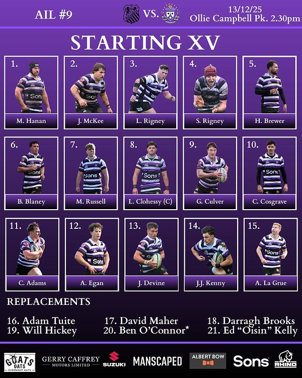 We make the short journey to Ollie Campbell Park for our last fixture of 2025, as we lock horns with Old Belvedere Rugby Club in the first of our back to back fixtures ๐ฏ