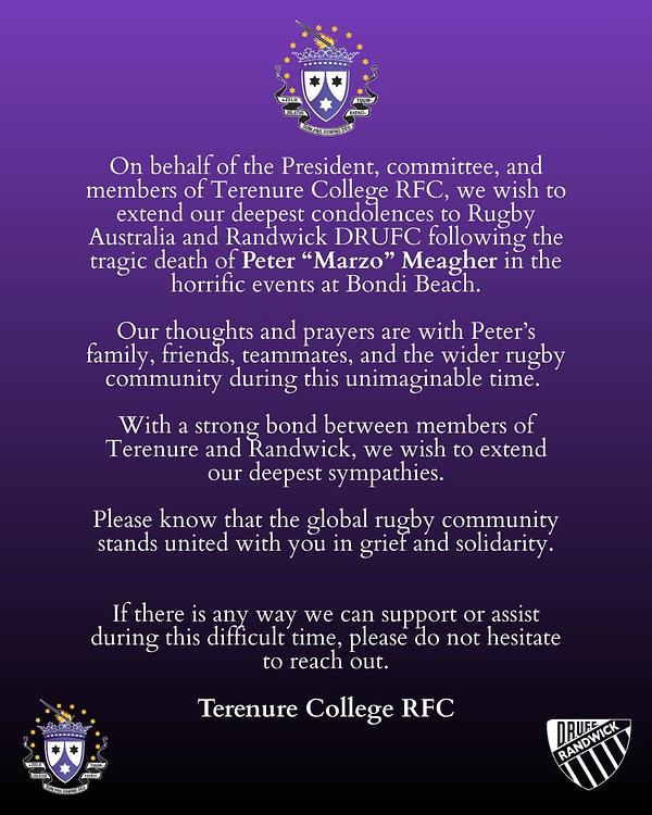 Sending our condolences to our friends in Randwick Rugby Club on the tragic loss of the beloved βMarzoβ.