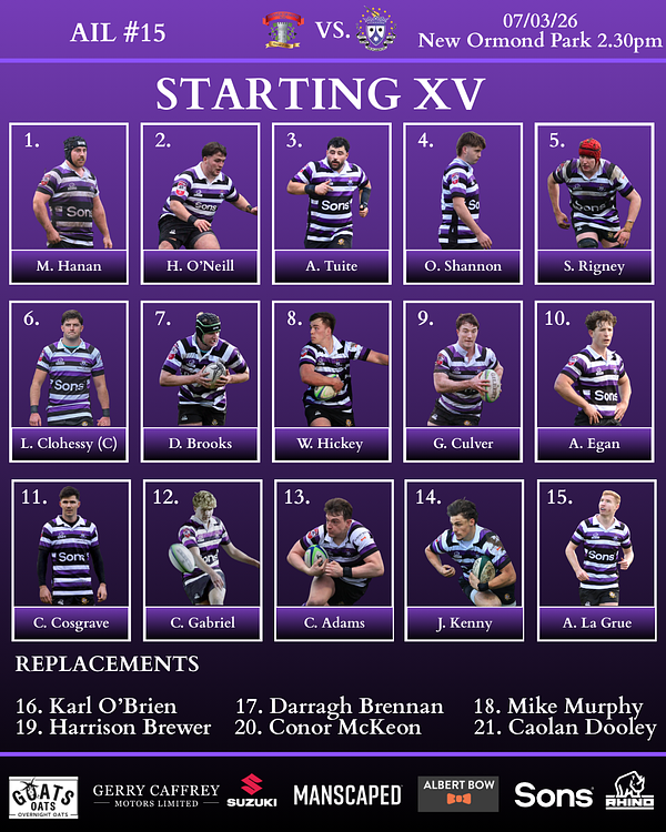 We’re into the business end - Our 21 for our trip to Nenagh for #AIL15